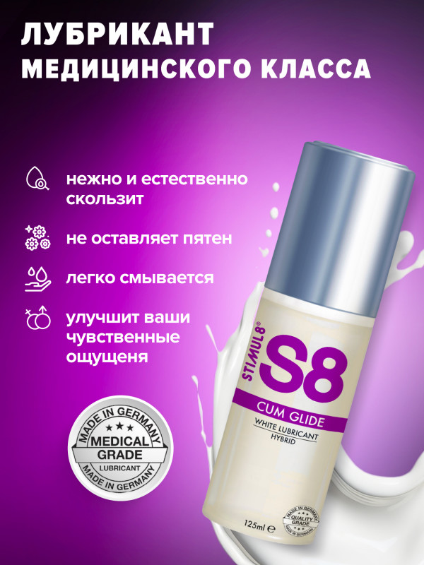 Потрясающий лубрикант "Stimul 8 Cum Glide" на водно-силиконовой основе гарантирует мега длительное скольжение, максимальный комфорт и позволяет воплотить в реальность самые тайные фантазии!