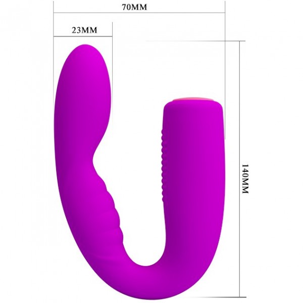 Супер гибкий вибратор выполненный в виде подковы предназначен для удовольствия в унисон! Найменьшая часть вибратора вводится в женщину, а найбольшая располагается на клиторе, при этом мужчина может войти беспрепятственно!
